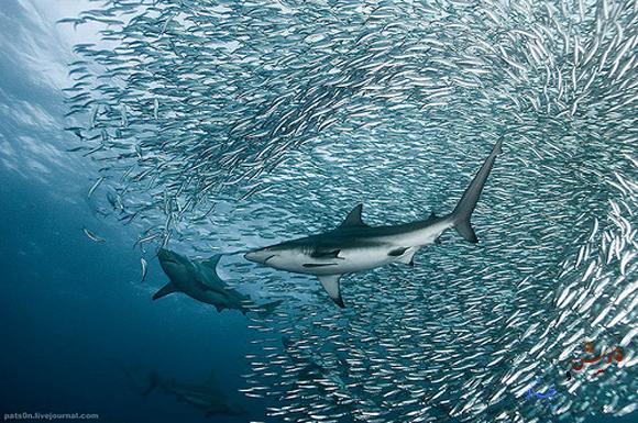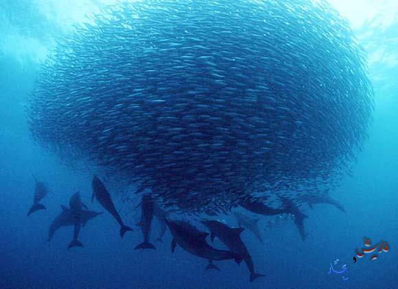فجميع هذه الحيوانات تتكاتف على سرب السردين متناسية العدواة بينها