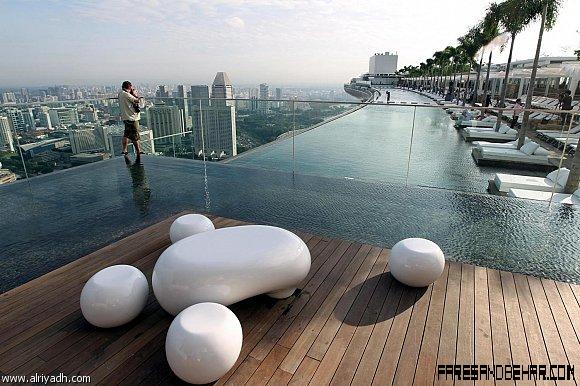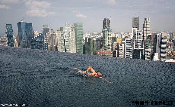 يوجد مسبح في قمة برج "Skypark" على ارتفاع 150 متر وسط مدينة سنغافورة