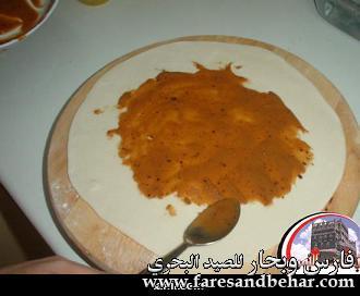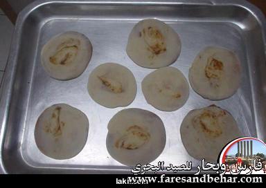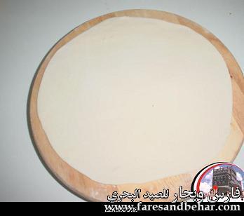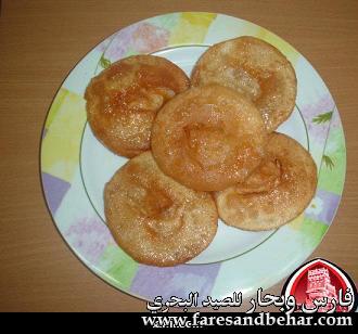 ![]() (بنت الشيخ) --------- المقادير 2 كاس دقيق ابيض ماء للعجن (الكمية حسب حاجة العجينة كما سأوضحها في الطريقة) ملح زيت غزبر للقلي مقادير الحشو نصف كأس سمن + 4 ملاعق دقيق القطر أو الشيرة( كأس ماء + 2كأس سكر) الطريقة تحضر الشيرة بالطريقة المعتادة وتترك لتبرد يحضر الحشو وذلك بتسخين السمن واضافة الدقيق وتحريكهم جيدا على نار هادئة والاستمرار بالتحريك حتى يصبح الخليط مثل الكريمة الغليظة ويكون لونه اشقر مائل للبني ثم ينزل من على النار ويترك ليبرد. تحضر العجينة باضافة الماء الى الدقيق المنخول مع الملح يضاف الماء تدريجيا اثناء العجن للحصول على عجينة متماسكة ملساء لا تلتصق باليد او بالوعاء (مثل عجينة خبز الطاوة) تقسم العجينة الى قسمين كل قسم يكور الى كرة متوسطة الحجم وتترك لترتاح حوالي نصف ساعة تفرد العجينة بالنشابة الى قرص دائري مثل قرص الخبز لا سميك ولا رقيق جدا ![]() يوضع جزء من الحشو على سطح قرص العجينة ويملس حتى يغطي وجه القرص تقريبا ![]() يلف او يطوى القرص بشكل اسطواني ![]() تقطع الاسطوانة الى قطع صغبرة (اسطوانات صغبرة) لا يتعدى طولها 2 سم ![]() تضغط هذه الاسطوانات من طرفيها ليصبح شكلها دائري تم تترك 5 دقائق ![]() ابدأي الان بفرد كل دائرة بالنشابة الى دائرة اكبر (قطرها حوالي 4 سم) ![]() سخني الزيت للقلي في مقلاة عميقة وعندما يسخن الزيت اسقطي الاقراص فيه ونقصي شعلة النار قليلا وعندما يشقر لونها اقلبيها على الجهه الاخرى واخرجيها عندما يصبح لونها ذهبيا صفيها من الزيت ومباشرة اغمسيها في الشيرة واخرجيها مباشرة الى مصفاة حتى تتصفى منها الشيرة وهذا شكلها النهائي ![]() ان شاء الله تعجبكم .... وبالهناء والعافية |