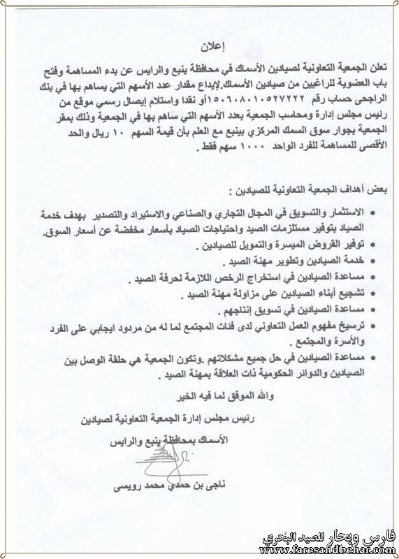| لصيادين, الاسماك, البحر, التعاونية, الجمعية, اعـــلان, بمحافظة, تأسيس, ينبع, عن |