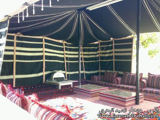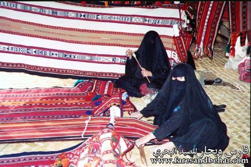 كما تتميز بيوت الشعر بمقاومتها وتحملها لظروف البيئة الصحراوي المتقلبة تتميز بيوت الشعر بخفتها في عملية التنقل وسهولة صيانتها ويمكن للمرأة البدوية إصلاح البيوت المصنوعة من الشعر دون الحاجة إلى من يساعدها في القيام بهذه المهمة . بيت الشعر من الداخل مقسما تقسيما خاصا في استعماله عند البدو حسب العادات والتقاليد ويكون غطاء بيت الشعر من السدو الذي لا يخلو من وجود فتحات صغيرة تسمح بمرور الهواء في فصل الصيف أما في مواسم الأمطار فتتضخم خيوط الشعر وتضيق حلقاتها بفعل المياه ، وبذلك لا تتسرب المياه إلى داخل بيت الشعر كما انه عند إشعال النار بداخل بيت الشعر فان الدخان يصعد إلى الخارج عن طريق الفتحات الموجودة في سقفه. المكونات الأساسية لانتاج بيت الشعر هو الصوف وشعر الحيوانات، وتستعين المرأة البدوية بالأدوات التالية: (المطرق): وهو عصا دقيقة يتم استخدامها في عملية تنظيف الشعر وتنقيته ، ويستمد البدو المطرق من غصون الأشجار مثل العوسج وكما يسمونها ( السدرة) ( الكرداش): وهو قطعتان خشبيتان لكل واحدة منهما مقبض لليد وفي سطح كل واحدة منهما عدد من الأسنان ويوضع الشعر لتنظيفة من الشوائب ( التغزالة ): وهي قطعة خشبية يستمدها البدو من قطع الأشجار المختلفة فيشق أحد طرفيها شقين ، ووظيفتها مساعدة المرأة البدوية في تسهيل عملية الغزل . (المغزل): وهو قطعة من أعواد الشجر الأملس ويكون في راس المغزل قطعة حديدية تسمى ( السنارة ) ووظيفة المغزل الأساسية هي برم الشعر وغزله. ( الدجة): وهي مجموعة خيوط الشعر المغزولة والمبرومة بواسطة المغزل وتشبه الدجة الكرة المدورة لكنها اكبر منها حجما ، وبدون هذه الدجج لا تستطيع المرأة البدوية أن تعمل أي نوع من الاسدية . ( السدو): إذا أرادت المرأة البدوية أن تعمل نوع من اسدية، فيجب أن يكون لديها عدد كاف من الدجج وإذا كان لها العدد الكافي من الدجج تستطيع أن تبدأ عملية إنتاج السدو . أما المواد اللازمة لخياطة بيت الشعر وتحضيره هي: ( المخيط): أداة حديدية تشبه الإبرة لكنها اكبر حجما منها يبلغ طولها ثمان سم تقريبا . ( الخلال والمريرة) : الخلال قطعة من الحديد يكون أحد طرفيها مدورا وتشبه المخيط لكنها اكبر حجما . ( الاطناب ) : وهي حبال مصنوعة من صوف الضأن أو الماعز أو الابل وتستخدم لشد بيت الشعر وتثبيته. (المنساب والفهر ) : المناسيب يقصد بها البدوي الأوتاد وهي قطعة حديدية ووظيفة المناسيب هي تثبيت الاطناب في الأرض. ( المحالة) : وهي تشبه العجلة لكنها صغيرة الحجم وتصنع من الحديد أو الخشب ووظيفتها تسهيل عملية سحب الطنب الذي يحتاج إلى المزيد من القوة عند تثبيته بواسطة المنساب في الأرض. ( الأعمدة ) : وهي مصنوعة من خشب الاثل أو الطلح وطولها من المترين إلى مترين ونصف ووظيفتها رفع بيت الشعر . |