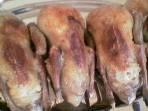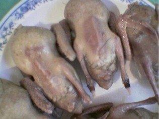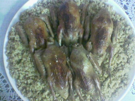 ![]() اليوم نخرج شوى عن اكلات السمك ونشرح طريقة عمل الحمام المحشي بالفريك او الارز ---- المقادير- لكل زوج من الحمام نحتاج الى من 1\2 الى 3\4 كوب فريك أو رز (حسب حجم الحمام ) بصلة متوسطة مفرومة ملعقة صغيرة سمن ملح + 1\2 ملعقة صغيرة فلفل أسود أو حسب الرغبة حوايج الحمام يعني الكبدة والأونصة الطريقة ----- يدعك الحمام جيدا بالدقيق والملح ويترك نصف ساعة ثم يغسل جيدا ويترك قليلا ليصفى من الماء فى هذه الأثناء نحضر خلطة الحشو من الرز مع البصل المفروم المدعوك بالملح والفلفل + السمن + او زيت الكبدة والأونصة أو الفريك وممكن أن يُحمر الفريك شوية قبل الحشو ثم بعد أن يبرد نضع عليه باقي المكونات ماعدا السمن او الزيت لأنه قد تحمر بالسمن او الزيت ... وهنا السمن ليس سمن برى اوبلدى ونما سمن الشوكة والسكين يعنى سمن نباتى . فريك ![]() رز مصرى ![]() يكتف الحمام ![]() يدعك الحمام من الداخل بقليل من الملح والفلفل نضع الحشو سواء كان الرز أو الفريك ونترك فراغ قليل بالحمام لأن الحشو سيتمدد ![]() ![]() تخيط فتحته من اسفل وكذلك من عند الرقبه ![]() ![]() ![]() نسلق الحمام في الماء المغلي والمضاف اليه بصلة متوسطة صحيحه وحبهان (هيل)ثم بعد شويه نهدي النار ونضع فص مستكة ويترك حوالي ساعة وفي نصف وقت النضج نضع قليل من الملح معه بعد النضج يرفع طبعا من الحلة ( القدر ) ويترك ليجف وهذا ضروري جدا ثم يحمر في السمن او الزيت ويقلب على كل الجوانب ![]() نرش عليه قليل جدا من الملح والفلفل وننزع منه الخيط بحرص ثم يقدم ![]() ![]() او نقدمه بالفريك حسب الرغبة بقي ![]() يلا يا جماعة كلكم معزومين على حساب منتدى فارس وبحار للصيد البحرى .... اليوم فقط . يارب الحمام يكون عجبكم