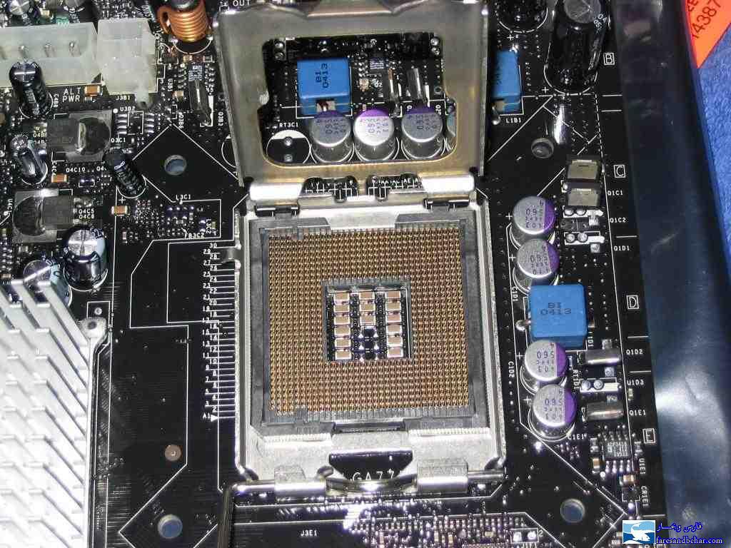 ولاحظوا بالصورة التالية كيف اصبح مكان تركيب المعالج على المذربورد الحديثة يحتوي على اسنان