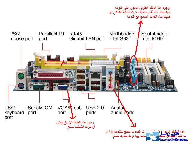 وهذي صورة توضيحية لأماكن بعض المنافذ باللوحة ووظيفتها