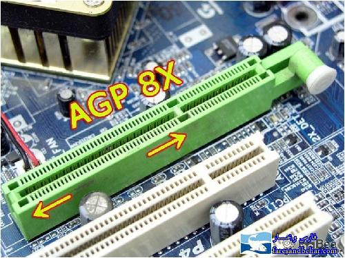 وشكل المنفذ يختلف قليلا بين AGP و PCI EXpress على المذربورد وهذا شكل المنفذين