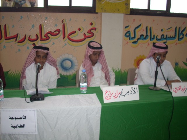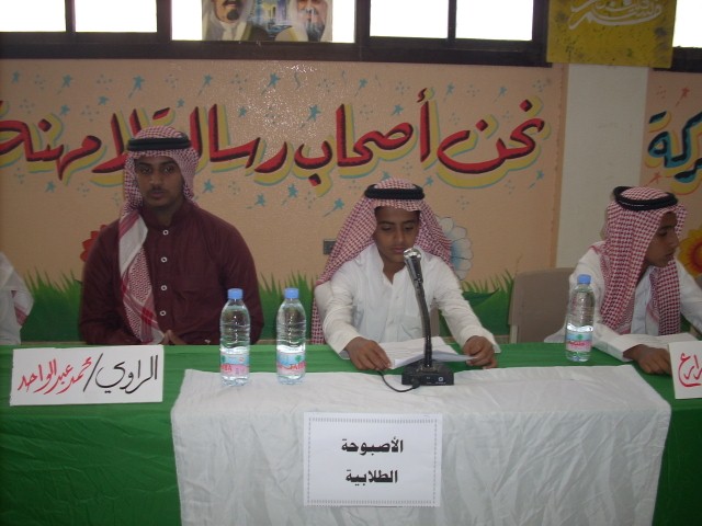![]() تم تدريب الطلاب المشاركين في برنامج (الأصبوحة الطلابية )للمرحلة المتوسطة بمركز مصادر التعلم وهذا البرنامج يهتم بإبداعات الطلاب في مجال (القصة –المقالة- الشعر –الخاطرة) وبعد الإنهاء من فترة التدريب تم تنفيذ البرنامج في يوم ا لثلاثاء الموافق 7/ 6/ 1432 هـ وهو يومُ تجلى فيه الشعر ساطعاً وظهر الإبداع أقامت متوسطة عثمان بن عفان رضي الله عنه برنامج الأصبوحة الطلابية بمشاركة مجموعة من الطلاب وزعت عليهم مواضيع الأصبوحة وهي كالتالي ( المقال ـ الشعر ـ القصة ـ الخاطرة ) بحضور وكيل المدرسة الأستاذ / عبدالإله الحربي وحضور فعّال من معلمي المدرسة وتفاعل مميز من طلابها بدأ البرنامج بتلاوة آيات من الذكر الحكيم تلاها الأستاذ الفاضل/ يحي زيد ثم بدأت بعد ذلك مواضيع الأصبوحة مع الشاعر الطالب/ طارق شداد في قصيدة بعنوان (( حال الشباب )) ثم تلاها قصة مؤثرة بعنوان (اليتيم ) مع الراوي الطالب/محمد عبدالواحد وكانت الأصبوحة موعودة مع فقرة رائعة ومميزة (( الخاطرة )) وأي خاطرة كانت انها (( خاطرة الأم )) مع الأديب الطالب/ مراد زارع وأخيراً اختتمت الأصبوحة مع مفاجأة الأصبوحة الكاتب المميز والمتألق الطالب / فهد سطام ومقال بعنوان ( أحرص على ماينفعك ) وفي ختام البرنامج قام الأستاذ / خالد المقاطي بتوجيه أسئلة للحضور حول مواضيع الأصبوحة والإجابة عليها من الحضور نسأل الله العلي العظيم التوفيق والسداد لأصحاب فكرة الأصبوحة والقائمين عليها من شعبة النشاط الثقافي في إدارة التربية والتعليم بمحافظه ينبع الطلاب المشاركون 1ـ مقدم الأصبوحة / مروان طائل الحربي مشرف برنامج الأصبوحة 2ـ المقال / فهد سطام العنزي ومشرف النشاط الثقافي 3ـ القصة / محمد عبدالواحد الكبيدي الأستاذ / خالد فهد المقاطي 4ـ الشعر / طارق شداد الحربي 5 ـ الخاطرة / مراد زارع السناني مشرف برنامج الأصبوحة ومشرف النشاط الثقافي الأستاذ / خالد فهد المقاطي |