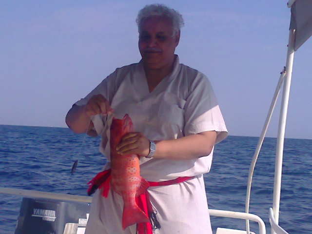 وهذه الصوره مع احمد العنزي مع سمكه من فصيلة الهامور