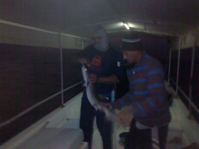 فهد صويغ وابو محمد في معركه شرسه مع القرش استعملت فيها كل وسائل اسلحة التدمير الشامل من ضرب بالعصا وضربات بالقباقيب والاسلحة البياض من سكاكين وزرديات ولم تسلم الخيوط من تشبك حركات القرش اثناء المصارعه