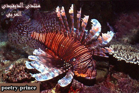 سمكة الديك : هذه السمكة الملحوظة الجمال تعد من أخطر الأسماك بالبحر الأحمر ، وأشواكها التى تتخذ شكل الريش مُزوّدة بغــُدد لإفراز السم ، ويُمكن أن توجّه نحو الدخيل ، وإذا أثيرت يُمكن أن تندفع للأمام بمساعدة أشواكها الظهرية ، والألم الناشب عن الجروح الناتجة من أشواك هذه السمكة قد يكون مُعَذِّبًا وقد يتسبّب فى الموت ، ويُمكن تخفيف الألم من خلال غمر الطرف المُصاب فى المياه الساخنة