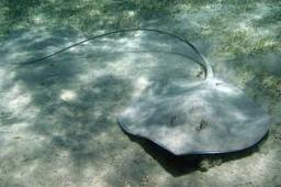 ورنك : هذا السمك الرَّاى اللاسع الضخم المُميّز يكون على شكل يُشبه المُعيّن ، يصل طوله إلى 3.2 م ، ويُفضّل العيش فى المناطق الرملية والطينية فى البحيرات الضحلة الصافية والشعاب الواقعة قرب الشاطئ ، وفى هذه الصورة يكون مُغطى جزئيًّا فى الرمل ، و يتغذى فى الغالب على الأسماك والرخويات والقشريات والقناديل .