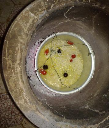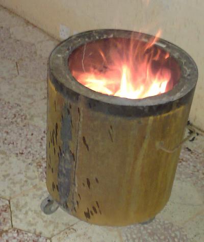 بعد مايجمّر البرميل نحط قدر الرز ونرفعه عن الجمر قد اصبع