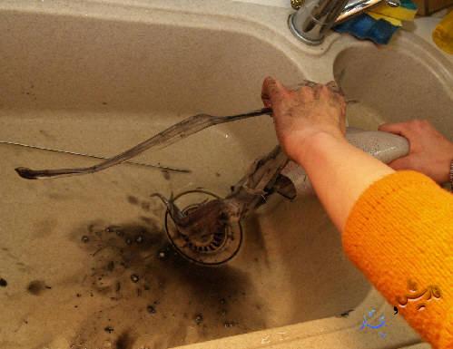 ادخلى يدك الى داخل الجسم و حاولى تنظيفه و شدى الى الخارج