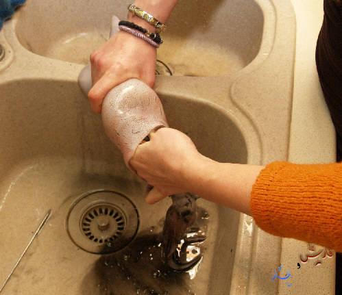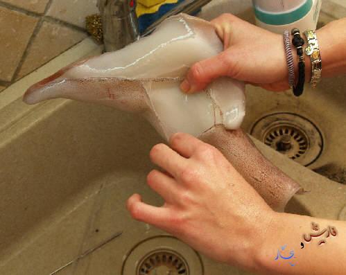 نغسله جيداا بالماء الجارى من الداخل و الخارج