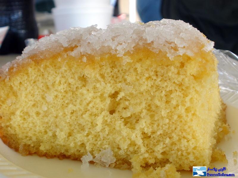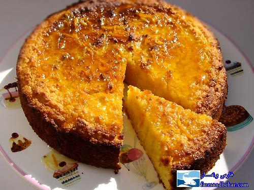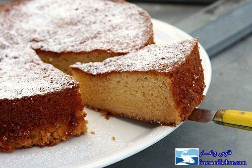 الطريقة: ندهن الصينية بزيت ونرشه بالطحين ثم يوضع البيض في خلاط ويخفق حتى يتغير لون البيض قليلا ثم نضيف السكر ونتابع الخفق فبقية المواد يصب المزيج بالقالب ويحمى الفرن لمدة 10 دقائق لمدة 350 ف