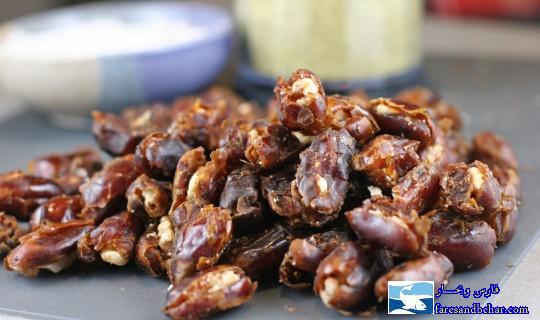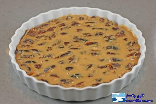 ثم اضيف التمر ثم نضيف الباقي من خليط الطحين