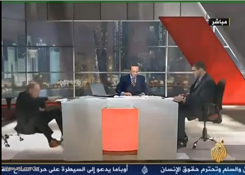 عاجل (أحمد العلي) أثارت لقطة في برنامج الإتجاه المعاكس مساء اليوم الثلاثاء , لدى المشاهدين بعد سقوط الإعلامي السوري عبد المسيح الشامي من كرسيه في نهاية الحلقة . وقدم برنامج الاتجاه المعاكس الذي يعده الاعلامي السوري فيصل قاسم على قناة الجزيرة حلقة تناولت الاحداث في سورية . وطالب القاسم في صفحته على الفيسبوك من المعارضة السوري ترشيح ممثل عنهم ، حيث كان هناك شبه توافق على السيد محمد العبد الله الذي يقيم في امريكا . ومثل وجهة النظر السورية في هذه الحلقة عبد المسيح الشامي . تحياتي ,,, |