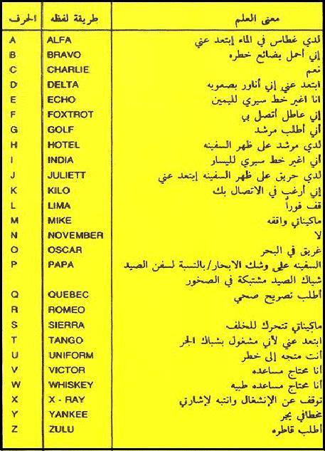 ![]() ![]() اخواني اعضاء منديات فارس وبحـــــار للصيد البحري هذا الموضوع مهم جداً لكل من يرتاد البحر بالزورق لأي غرض كان حيث تعتبر الاعلام البحرية مهمه جداً للسفن سواءً حربية أو تجارية أو سفن صيد كوسيلة إتصال فيما بينها عندما تتعطل الاتصالات فتستخدمها للتخاطب بين بعضها برفع مجموعة اعلام كحروف ابجدية لترد عليها السفن الأخرى ، وكذلك تقوم السفن برفع علم معين عندما تقوم بأعمال في البحر أو يكون لديها حالة معينة في البحر لتبين للسفن الأخرى والزوارق وغيرها ماذا لديها ، فلكل علم معنى معين متفق علية دولياً وهذا ما يهمنا بهذا الموضوع وساقوم بعرض جميع الاعلام ومعانيها التي يجب على مرتاد البحر معرفتها للسلامة أو للمساعدة ببعض الحالات. فمثلاً عندما ترفع سفينة علم (ALFA (A يدل على أن لدى السفينة غطاس(غواص) في الماء ،أبتعد عني. وكذلك عندما ترفع علم (VICTOR(V يدل على أن السفينة تحتاج للمساعدة. |