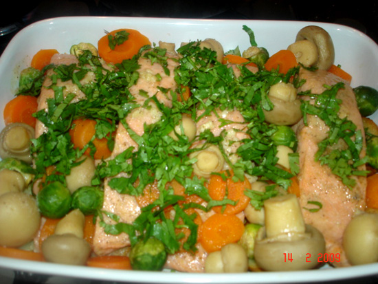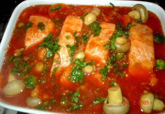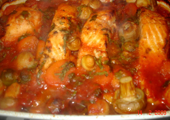 و فوقها طبقت السمك المتبل و بعض الخضار