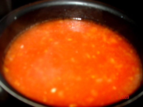 طماطم بدون قشر + صلصة طماطم + ملح/ فلفل ..ممكن إضافة ملعقة صغيرة من بهار السمك ؛