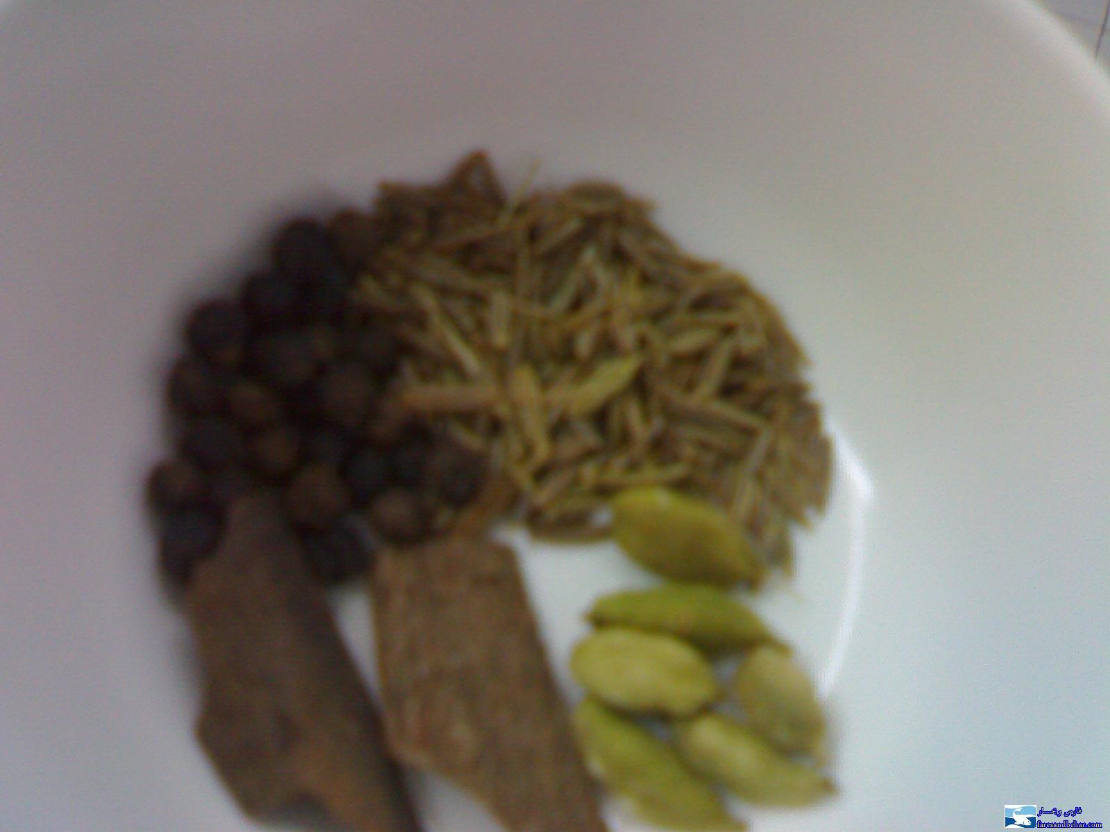 ( وطبعا لا ننسى الهال والقرفة والكمون والفلفل الاسود والورق الهندي