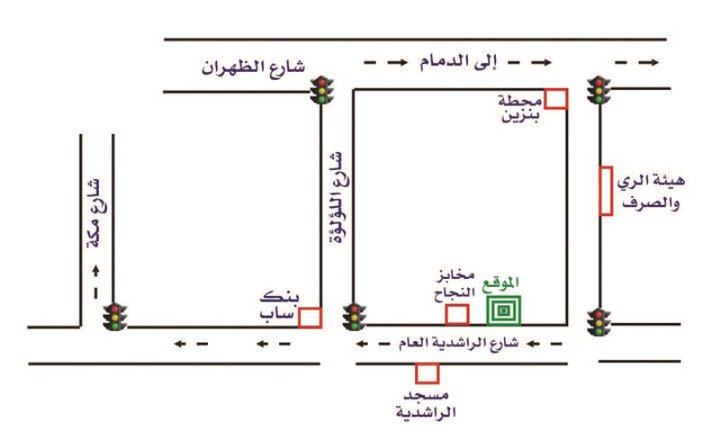 للتوضيح يوجد خطأ بسيط في المخطط موقع بنك ساب يكون بزاوية أمتداد مسجد الراشديه