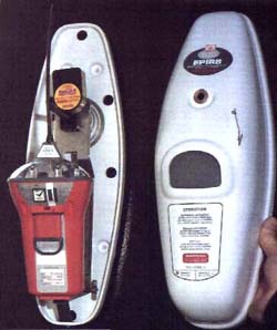 ![]() المرشد اللاسلكي لتحديد الموقع EPIRB الوظيفة : تحديد مكان السفينة الغارقة بواسطة جهاز يتم تعليقه داخل السفينة وعند وصل المياه إليه تفتح علبته بواسطة ضغط المياه ثم يدفعه الضغط إلى أعلى فارداً الهوائي الخاص به ويبدأ فوراً في إرسال إشارة تحدد هوية السفينة الغارقة ، وباسطة هذه الإشارات يتمكن القمر الصناعي من تحديد مكانه وإبلاغ المحطات الساحلية عن مكان السفينة الغارقة . أنواع المرشد اللاسلكي طبقاً لتردده : (1) مرشد لاسلكي يعمل على الترددات VHF على التردد 156.2 ميجا هيرتز للإرسال للسلطات الساحلية . (2) مرشد لا سلكي يعمل على التردد 406 و 121.5 ميجا هيرتز للإرسال إلى القمر الصناعي كوزباس سارسات وهو قمر صناعي روسي - أمريكي مشترك لأغراض الخدمة البحرية . (3) مرشد لا سلكي يعمل على التردد 1.6 جيجا هيرتز للعمل مع قمر الاتصالات الأوروبي إنمارسات . أنواع المرشد اللاسلكي طبقاً للاستخدام : (1) المرشد اللاسلكي البحري EPIRB وهو يعمل مع السفن والوحدات البحرية .
