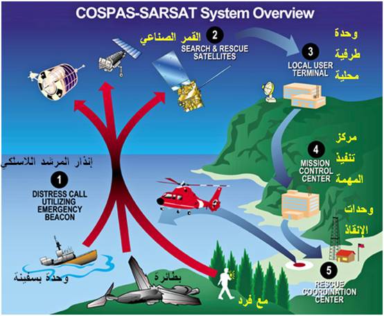 (2) مرسل اشارة تحديد الموقع ELT وهو يختص بالطائرات (3) محدد الموقع الشخصي وهو يتعامل مع الأشخاص والأنظمة الأرضية . |