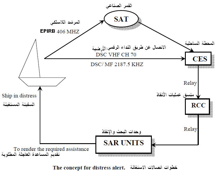 ![]() النظام الدولي للاستغاثة والسلامة البحرية GMDSS هو نظام تم استحداثه لضمان وصل إشارة الاستغاثة من السفن إلى الشاطئ بالاستعانة بنظام الاتصال اللاسلكي الأرضي ونظام الاتصال اللاسلكي الفضائي، وقد تم التفكير فيه بعد حادثة تيتانيك الشهيرة لضمان سلامة أوفر لركاب السفن ، ويختلف عن النظام القديم للسلامة البحرية في عدة أمور هي : 1- نوعية الأجهزة المحمولة على السفينة للاستغاثة لا تعتمد على حمولة السفينة وإنما على المنطقة البحرية بمعنى أنه كلما زادت المسافة البحرية التي تسير بها السفينة زاد عدد وأنواع الأجهزة المحمولة على السفينة . 2- الاستفادة من الأقمار الاصطناعية في التبليغ عن أي أي سفينة تصدر نداء استغاثة . 3- استخدام رسائل رقمية جاهزة للارسال المباشر بمجرد ضغط زر واحد فقط بغرض الإبلاغ عن أي مشاكل على السفينة 4- الاعتماد على الوحدات الساحلية في التصرف في عمليات البحث والتقاط الناجين نظام GMDSS يسير وفق المخطط التالي : 1- تتلقى السلطات الساحلية الاستغاثة عن طريق الوحدات اللاسلكية الموجودة على السفينة ، أو من القمر الصناعي للاتصالات إنمار سات DSC أو من المرشد اللاسلكي الموجود على السفينة وهو يعمل تلقائياً عند غرق السفينة أو عند تشغيله يدوياً EPIRB 2- رسالة الاستغاثة تحمل اسم السفينة وموقعها وجنسيتها ونوع الخطر 3- تقوم الوحدات الساحلية بتوجيه سفن أو طائرات البحث لتبحث عن السفينة المنكوبة فوراً بالقرب من الموقع المحدد وتقوم بالاتصال بالسفن القريبة من المنطقة وتكليفها بالمشاركة في عمليات البحث. 4- عند اقتراب الطائرات أو سفن البحث من قوارب النجاة فإنها توجه شعاعها الراداري للبحث فيقوم باستثارة جهاز المجيب الراداري SART فبقوم بإرسال إشارات تظهر على الرادار مما يساعد على تحديد موقع السفينة المنكوبة . 1- نظام الاتصالات البحرية القديم وعيوبه : قبل تطبيق نظام GMDSS كانت السفن تستخدم نظام اتصالات يعتمد على ما يلي : أ - التشغيل اليدوي للأجهزة التالية : التلغراف اللاسلكي على طريقة مورس على التردد 500 كيلو هيرتز في المدى MF التليفون اللاسلكي على التردد 2182 كيلو هيرتز في المدى MF التليفون اللاسلكي على التردد 156.8 ميجا هيرتز في المدى VHF القناة 16 ب- مشاكل النظام القديم : · إشارات الاستغاثة تعتمد على السمع وهذا يتطلب مشغلين على جودة عالية · عمليات الإنقاذ ممكنة فقط في حدود 200 ميل بحري · السفن المنكوبة لا تتلقى أي إشارة تفيد باستقبال إشارة الاستغاثة (إشارة معرفة). 2- تطور نظام GMDSS · تم اقتراحه من المنظمة البحرية الدولية IMO في عام 1979 · بدأ العمل به في فبراير 1992 · أصبح تطبيقه واجباً وإلزامياً منذ عام 1999 3- وظائف نظام GMDSS · إرسال واستقبال إنذار الاستغاثة · القيام بعمليات الاتصال الخاصة بالبحث والإنقاذ · تحديد مواقع السفن المستغيثة · إذاعة معلومات السلامة البحرية · توفير الاتصالات العامة · توفير الاتصالات بين الشبكات لقد تم تطوير نظام GMDSS كنظام دولي للاستغاثة والسلامة البحرية باستخدام تقنية الأقمار الصناعية Satellite وتقنية النداء الرقمي الاختياري DSC في الاتصالات الأرضية ضمان الاستقبال والإرسال الأوتوماتيكي لإشارات الاستغاثة . وهذا النظام هو في الأساس نظام اتصال من السفن إلى السلطات الساحلية وتستقبل مراكز التنسيق على الساحل RCC إنذارات استغاثة من السفن في عرض البحر ومن ثم تقوم بتنسيق عمليات البحث والإنقاذ. و يوفر النظام وصول الإنذارات والاتصالات من السفن وبعضها البعض، ويتم توفير أنواع أخرى من الاتصالات هي:- الإنذارات العاجلة (وهي درجة أقل من درجة الاستغاثة في الخطورة). اتصالات السلامة والأمان (وهي درجة أقل من درجة الإنذارت العاجلة في الخطورة) الاتصالات الروتينية المعتادة إذاعة بيانات ومعلومات السلامة مثل : (1) التحذيرات الملاحية (2) التنبؤات المناخية (3) رسائل عمليات الإنقاذ |