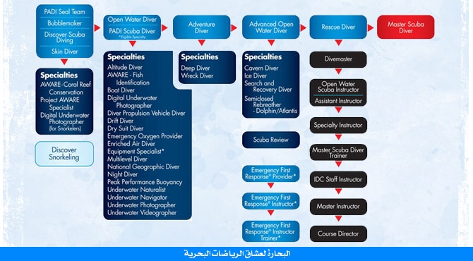![]() الغوص بالمعدات( Scuba diving), هذا النوع من الغوص يتطلب الحصول على رخصة غواص, لكي تتجنب المخاطر والمشاكل المستقبليه بأذن الله تعالى , نبذة عن الغوص : الغوص يكون بأستخدام الاكسجين اسفل الماء , وذالك بواسطه تانك هواء طبيعي معبء ومظغوط المميزات: تتجلى عظمة الخالق بشكل لم تتوقعه ( عالم اخر تحت الماء ) التعرف على الكائنات الاخرى اسفل الماء. الالوان جمال لون الاسماك والمرجان اسفل الماء . البحث عن الكنز الصيد أشياء بحقيقه ماعرف اوصفها , فقط جرب وراح تعشق بأذن الله تعالى اذا استخدم الغواص جميع اساليب الغوص بدون الزيادة والنقصان فأنه يسلم من اي مخاطر المخاطر : تسمم هواء التانك ( هواء متسمم ) راح تستنشقه ( ولتفادي هذه المشكله يجب فحص التانك كل بين فتره واخرى - سوف تتعلمها من مدربك ) انفجار فقاعة النيتروجي في جسمك ( ماراح ندخل في الاشياء الفيزيائيه ) ,طبعا عند غوصك يجب ان تراعي عدم الخروج المفاجئ من الماء لان ذالك قد يتسبب في قتلك السبب ( يتكون نيتروجين في جميع انحاء جسمك, فعند قيامك بالصعود السريع يتجمع النيتروجين ويتكون كحبه صغيره ومن ثم تنفجر , قد تنفجر لاقدر الله في رئتك او في قلبك او اي مكان في جسمك ) لمراعاة ذالك يجب ان تقف وقفة السلامه - تتعلمها اثناء التدريب لغوص الادفانس . القرش ( الأعلام شوه صورة الغوص بهذا المخلوق المخيف , اسنان , دماء , رعب , حتى كره الغوص ) , اي كائن غريب تدخل الى بيئته يحب يتعرف عليك , فأغلب القروش تقترب منك وتلتف حولك للتتئكد انك لست فريسه , بعضها اثناء الدوران يحاول ان يحتك بجسمك , لانه راح يطلع دم , اذا طلع دم من جسمك القرش بيعرف انك فريسه .الانسان بطبيعة الحال ليس من وجبات القروش, توجد طرق كثيره لأبعاده عنك ,ولاكن لاتفر فرار الدجاجة من القط , لانه راح يكون يومك سكر الاعماق : هذه الحاله تجي الغواص عند اعماق 50 متر او اكثر , والغوص الترفيهي فقط الى 50متر والباقي يعتبر غير ترفيهي .هذا النوع يعتبر كأنك في حالة سكر يعني دايخ , الحل بسيط اول ماتحس حاول انك تصعد بعض الامتار الى الاعلى او زميلك راح يسحبك الى الاعلى قليلا. درجات الغوص الترفيهي . معدات الغوص بدلة الغوص : wetsuit بدلة تتكون من قطعة كاملة. تكون بدله كاملة ويوجد بها سحاب من خلف الظهر لأغلاقها : من عيوبها السحاب يدخل بعض الماء. بدلة تتكون من قطعتين. عباره عن قطعتين القطعه الاولى تكونمن اسفل الرجلين الى مافوق البطن وعند جهة الصدر تكون على شكل قوس .والقطعة الثانية عبارة عن جاكيت كامل يغطي اسفل الفخدين. البدلة الكاملة البدلة ام قطعتين : انظر في منطقة الحوض هنا مكان اغلاق البدله مع الاخرى صوره لتوضيح بدلة قطعتين طبعا تختلف انواع البدلات وانواع الشركات المصممه والشي المستخدم له على سبيل المثال : شركة Orca< تقدم نوع من انواع البدلات بسعر 1300 $ ! ( هذا سعر عدة الغوص الحر ) : طبعا السعر هنا مقارن بالتصميم ونوعية الاستخدام : هذا النوع يستخدم للغوص الحر ( الغوص تحت الماء لمسافة مافوق 50 متر بدون اكسجين ) ! انواع الشركات كثيره منها :Riffe,Omer,Orca,wettie,beuchat,Maris,scubapro,mar es والكثير الكثير كيف اختار البدله الي تناسبني ! لايوجد شي رئيسي لأختيار البدله ( غير الجو ) . لازم نراعي الوقت الي نراح نغوص فيه ( برد, حر ) طبعا يوجد انواع لمتانة البدلات : 3mm,5mm.7mm ويزيد وينقص , ( انا استخدم هنا 5mm) بس الي يخاف من البرد ياخد7mm الاسعار : من 85 الى 600$ ( الي عندي سعرها 450$) ماركة OMER قطعتين طريقة العناية: حاول انك ماتحتك بشكل كبير بالمرجان البحري. غسلها جيدا بالماء العذب بعد الانتهاء من استخدامها. علقها في مكان يدخلها الهوا - حديقة البيت- او اي مكان ينفع لذالك. 2/ الماسك Mask : هنالك انواع كثيره من الماسك ( النظاره ) ,توجد انواع تكون لونها اسود ومن الجوانب اسود ( هذي تنفع للتركيز في الامام فقط) يعني مايدخلها ضوء من الجوانب . انواع اخرى تكون على شكل بيضاوي ومكان الرؤية غير مقسم الى جهتين وتكون كبيره. هذا النوع الي مايدخله الضوء من الجوانب , وهو ممتاز للتركيز على الفريسه وهذا النوع نشوفه بكثره , هذا ا