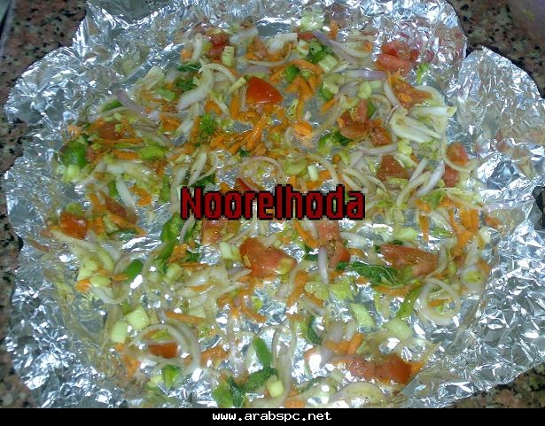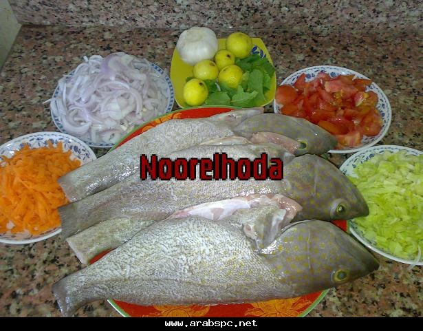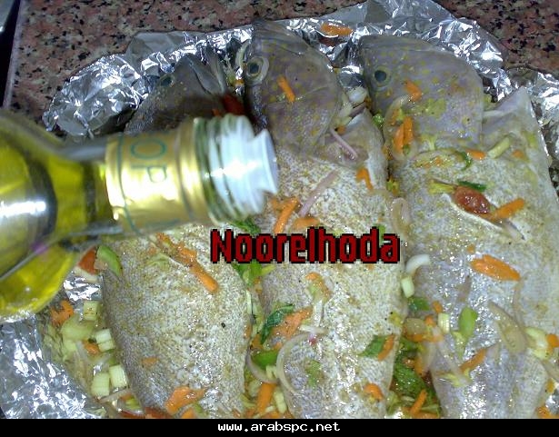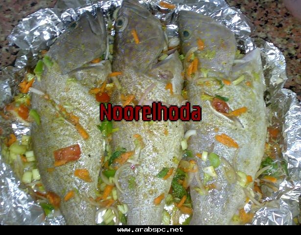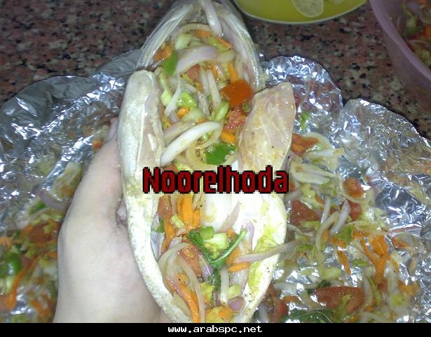 ![]() صينيه الهامور الخليجى على لطريقه المصريه من مطبخ نور الهدى بالصور التفصيليه مين فيكم بيحب السمك انا شخصيا بحبه و كل الاكلات البحرية واليوم عملت صينيه سمك هامور على لطريقه المصريه بالخطوات يارب تعجبكم المقادير 3 وحدات من سمك الهامور جزره مبشوره حبه طماطم مكعبات 2 حبه بصل مقطع جوانح 5 حبات ليمون ملعقتين خل 3 ملاعق ثوم مفروم اوراق نعناع او ريحان (اختيارى) كرفس مقطع زيت زيتون ملعقتان معجون طماطم متبل بالبهارات ملح فلفل كزبره باودر كمون بابريكا فلفل اسود الطريقه ننظف السمك جيدا وناخذ نصف الثوم ونضع عليه ملح وكمون وكزبره وعصير الليمون ونقلبه ونتبل به السمك ونتركه ساعه على الاقل نجهز الخلطه نضع البصل والجزر والكرفس والطماطم معا فى طبق نضيف التوابل ومعهم باقى الثوم واوراق النعناع المقطعه نقلب الخليط جيدا ونحضر صينيه للفرن نبطنها بورق قصدير ونفرش فيها جزء من الخلطه نحشو السمك بالخلطه هكذا ونرص الخليط فى الصينيه ونضيف عليه باقى الخلطه ونضيف زيت الزيتون على الوجه ونضع معجون الطماطم على الوجه هكذا ونلف الصينيه بالفويل ونضعها فى رف الفرن الاسفل الملاصق للنار مده نصف ساعه وبعدها ننقلها للرف الاعلى ونحمرها تحت الشوايه وهذا شكلها والف هنا وشفاء منقووول