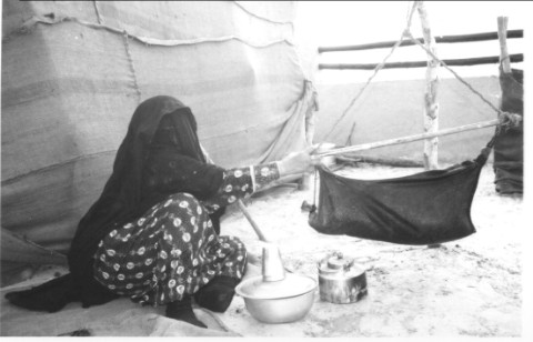 ![]() مسمياته عند البادية وحسب المناطق والقبائل : (( الصميل – السعن – السقاء – القربة – العكه الشجوة والمزبد والظرف )) الكل منا أو الكثير يعرف (تصنع هذه الأدوات من جلد الغنم أو الماعز. وكان أهلنا سابقاً قبل ظهور الآلات الكهربائية يستخدمونها في أعمال مهمة فلكل من هذه الأدوات دورها في حياتهم عندما كانوا متمسكين براعية الاابل الأغنام والماعز قبل التوجه إلى الحياة المدنيه إلا القليل منهم فإنهم لا يزالون متمسكين برعاية الاأبل الأغنام والماعز إلى وقتنا الحاضر. ( الشجوة ) او الصميل) او السعن) : عبارة عن جلد غنم أو ماعز او الظبي كانت المرأة سابقاً تقوم بتنظيفه يسلخ جلد الشاة سلخاً يراعى فيه الدقه وينظف الجلد من بواقي اللحم ثم بعد ذلك تعمل الخلطة الخاصةثم يدبغ ,ويتكون الدباغ من { نبات القرط + أوراق الأثل+ بعض عروق السلم } وهو يختلف من مكان الى اخر وكل قبيلة ولها طريقتها في ذلك , تطبخ المكونات السابقة في قدر حتى تغلي ثم بعد ذلك تترك لتبرد ثم يوضع الجلد فيه لمدة تتراوح من يوم او يومين (يخلل) حتى (يتشارب) من الدباغ ثم يوخذ وينشّف وهي عبارة عن { ماء + ملح + تمر } ويعبأ الجلد بهذه الخلطة ويسكر ويربط ويدفن بالرمل لمدة قد تصل الى ثلاثة ايام او اكثر او اقل بعد ذلك يتم اخراج الجلد وقد بدء الصوف بالتساقط ويتم ازالة الصوف بمنتها السهوله بسبب الخلطة السابقه يفرغ الجلد من المحتوى وينشف ، ودبغه حتى يبقى ليناً ، حيث تضع بداخله الملح واللبن لفترة من الزمن ، ثم تقوم بتنظيفه من الصوف ، وبعد ذلك تأتي بعروق شجرة الشوك ـ وهي شجرة معروفة في منطقنتا ـ وتغلي هذه العروق بالماء ، ثم تضع الجلد في الماء حتى بكتسب من الماء اللون الأحمر الغامق ـ لون عروق شجرة الشوك ـ الصميل او السعن وهذا للحليب أو الماء أما استخدام ( السعن) تقوم راعية البيت بعد تخثير الحليب ،وتبريدة نهاية النهار تقوم بوضعه في الصباح الباكر داخل ( السعن ) ونفخها ، وإحكام إغلاقها حتى يسهل تحريكها أثناء عملية الخض ، وينتج عن عملية تحريك (السعن) فرز المادة الغنية بالدهن والتي تسمى: ( الزبدة ) ، وتكون ناصعة البياض طيبة الطعم . أما ( المزبد ) : فلا يحتاج إلى عملية صبغه بعرق شجرة ( الشوك ) ، وجاءت تسميته بالمزبد لأن المرأة كانت تضع فيه ( الزبدة ) فهو عبارة عن حافظة تحفظ الزبدة من الفساد ريثما تقوم المرأة بإماعة الزبدة وتحويلها إلى سمنة .) هنا يأتي دور ( الظرف أو العكه ) وغالباً ما يصنع من جلد الحوار حتى يأخذ كمية كبيرة من السمنة ) أما عملية تحويل الزبدة إلى سمنة ، تقوم راعية البيت عندما يمتلأ (المزبد) بالزبدة بوضع (القدر ) على النار ثم تضع الزبدة داخل القدر ، وتقوم بتحريكها لفترة من الزمن حتى تذوب ويطفو السمن إلى الأعلى ، وترسب مادة تسمى ( الخلاصة ) يكون طعمها مالحاً ، بعد ذلك تقوم راعية البيت بتبريد السمنة ، ومن ثم وضعها داخل (الظرف ) الذي يعتبر حافظة لحفظ السمنة من الفساد .السقاء لخض اللبن المخيض واستخراج الزبد (الدِهن القربة وهذه للماء تختلف ان فيها عملية الخرازه (خياطة الجلد) ومماسكها من كرعان الذبيحه أرجو أن أكون قد وفقت فيما نقلت بما كتب اخونا الكريم/ مانع بن شنيخ فى موضوعه الموضح اعلاه . |