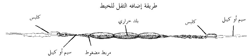 معنى التشخيط: التشخيط (Trolling): هو نوع من أنواع صيد السمك و يستخدم فيه طعم طبيعي أو صناعي مجهز بخطافات. و يجر خلف القارب باستخدام الخيط .بحيث يتحرك هذا الطعم بحركة تثير الأسماك آكله اللحوم مما يجعلها تهجم عليه و تشبك بالخطافات. معدات التشخيط: - السناره : و هي مكونه من القصبة و البكرة ( مكينة التشخيط ). و لقصبه السناره نوعين: في النوع الأول يمر الخيط خلال بكرات صغيره على القصبة و النوع الثاني يمر الخيط خلال حلقات على القصبة و لكل نوع مميزاته و عيوبه. كما أن لمكينة التشخيط عده أنواع و أحجام و منها ما هو بسرعة واحده و منها ما هو بسرعتين. - الطعم أو الميرور: و هو الجزء الذي يتم سحبه خلف القارب و سوف نتكلم عنه بالتفصيل لاحقا. - اليزه و المنتب: اليزه أو الجزه هي الشبكة التي تستخدم لرفع السمكة من للماء للقارب . و المنتب هو عباره عن خطاف كبير موصول بعصاه طويله و يستخدم لرفع السمكه من الماء كذلك . حيث أن رفع السمكه بالخيط بدون إستخدام هذه الأدوات قد يؤدي إلي سقوط السمكه بالماء و فقدها. - حزام التشخيط: حزام مع قاعده يتم تثبيت السناره فيها لتسهيل السحب. - مداور و بلود و هوكات و مشابك . - عداد خاص يتم تركيبه على قصبه السناره لحساب طول الخيط. - ميادير بديله. - خيوط إضافية و خيوط معدنية ( أسيام ). - كماشة و سكين حاده. - قفازات. تجهيز و ترديع خيط التشخيط: - اختيار الخيط: من الضروري أن يكون الخيط قوي و خفيف و غير مرئي قدر الإمكان و يكون لونه مناسب للون المياه و التي سوف يستخدم فيها , و تكون سماكته مناسبة لحجم الميرور و نوع و حجم الأسماك المراد اصطيادها , و بطول لا يقل عن 300 قدم تقريبا. - إستخدام الخيط المعدني (السيم أو الكيبل): يتم ربط 50 - 100 سم تقريبا من السيم في نهاية الخيط النايلوني لحمايته من القطع سواء من حدة أسنان السمكه أو من محاولاتها للهرب بعد أن تشبك بها الخطافات, و من أهم الخصائص المهم تواجدها في السيم القوه و الخفاء حيث أنه كلما كان السيم سهل الرؤيه كلما قل إحتمال هجوم السمكه على الميرور. وذلك يختلف من نوع إلي آخر طبعا. - ترديع و ربط الخيط: بعد تركيب الخيط ببكره السناره يتم تمرير الخيط بحلقات أو بكرات القصبه إلي النهايه و يتم ربط الخيط بالميرور مباشرة عن طريق مشبك أو يتم ربط الخيط بمدور و يليه خيط معدني و من ثم المشبك ليتم تركيب الميرور. و طريقة ربط الخيط بالمدور أو المشبك أو الميرور مباشره هي كالتالي : ومن النقاط المهمه التي يجب مراعاتها عذد تجهيز الخيط للتشخيط: - تمدد الخيط: كلما زاد طول الخيط بالتشخيط و كان التشخيط بسرعه عاليه و بميرور كبير نسبيا . فإن الشد يزيد على الخيط مما يؤدي إلى تمدده و إمكانيه إنقطاعه بمجرد أن يمسك الميرور بالسمكه. - العقد: تقلل العقد و الإنكسارات و الشلوخ من قوه الخيط. ( العقد تقلل قوه الخيط بمقدار 25- 50%). - إستخدام السيم قبل الميرور مهم جدا لحمايه الخيط من الإنقطاع. مع الحرص على أن يكون السيم نظيف من الصدأ و لا يحتوي عقد أو إنكسارات أو تعرجات لما قد تأثره من عدم إستقرار في حركه الميرور و إخافه الأسماك. - الربطات أو العقد السيئه أو الكبيره سوف تؤدي إلى عدم الإستقرار في حركة الميرور مما يخيف و يرهب الأسماك. إستخدام البلد أو الثقل في التشخيط: هناك عده طرق تساهم في إنزال الميرور إلي أعماق أكبر منها إضافة ثقل للخيط قبل الميرور ,و يتم ذلك بتمرير سيم أو كيبل خلال مجموعه من الأثقال (بلد خراري) و تثبيت الأثقال بكلبسات و ربط أحد طرفي الكيبل أو السيم بالخيط الرئيسي و الطرف الأخر بمدور مربوط بالسيم المتجه نحو الميرور , مع الحرص على تطويل السيم بحيث يكون الثقل بعيد عن الميرور حتى لا يؤثر على حركه الميرور أو يخيف الأسماك. الداونريجر: هي أداه أخرى تستخدم كذلك لإنزال الميرور لأعماق أكبر و هي عباره عن ثقل بوزن 1 كجم أو أكثر و عادةً يكون به زعنفه للحفاظ على الثبات و منع الدوران . الداونرجر لا يكون مربوط مباشره بالخيط بل يكون مربوط بكيبل منفصل و يثبت به الخيط الرئيسي عن طريق كلبس قابل للانفصال ذاتيا (Breakaway) بمجر