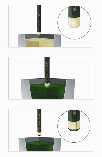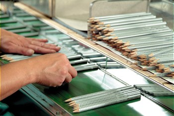خطوات تصنيع القلم الرصاص: [*] يتم تقطيع خشب شجر الأرز إلى كتل خشبية أصغر يتم صنع الأقلام الرصاص منها.[*] بعد ذلك يتم تقطيع تلك الكتل إلى شرائح خشبية أصغر.[*] يتم معالجة تلك الشرائح الخشبية عن طريق الشمع و الأصباغ.[*] عن طريق إحدى الماكينات يتم حفر أخاديد غائرة بداخل الشرائح الخشبية، ليتم وضع مادة الكتابة بداخلها "وهي الجرافيت".[*] يتم صنع مادة الكتابة بداخل القلم من عجينة مكونة من الجرافيت والطمي، وهي التي يتم وضعها بداخل الشريحة التي تم حفرها، وبعد ذلك يتم لصقها بشريحة أخرى تم حفرها بنفس الطريقة "لعمل ما يشبه السندويتش".[*] هنا يتم إدخال الشريحتين إلى ماكينة أخرى لإخراج الشكل النهائي للقلم الرصاص، بحوافه المعروفة لنا.[*] يتم تقطيع كل قلم على حدة من القطعة الطولية الكبيرة، ويتم معالجتها "عن طريق صنفرتها بالرمال" لتصبح ذات سطح ناعم.[*] في الخطوة التالية يتم طلاء كل قلم، ثم كشط جزء من طرف القلم ليتم فيه تركيب الحلقة المعدنية التي سيتم إدخال الممحاة "الأستيكة" فيها.[*] أخيرا يتم إدخال الحلقة المعدنية والممحاة في القلم ليصبح جاهزا للاستخدام. منقووووووول |