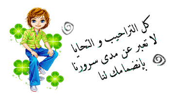 ![]() ![]() اهلا ومرحبا بك ياسعود الجدعاني... حللت اهلا ووطئت سهلا اشرقت الانوار بقدومكم يشرفنا انضمامكم الى قواربنا والابحار معنا عبر منتديات فارس وبحار للصيد البحرى تحياتي لكـ ... اخوكـ / ابو عبدالرحمن ,,, ![]()
